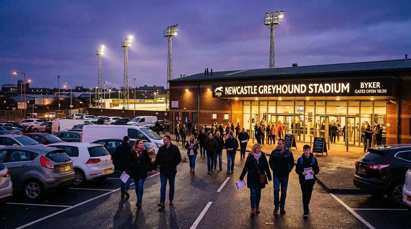 Newcastle greyhound stadium is one of those venues that people discover almost by accident — a birthday outing, a work social, a mate who swears the dogs are better craic than the cinema — and then wonder why they did not go sooner. The stadium sits on the Fossway in Byker, a ten-minute drive from the city centre, and it has been putting on greyhound racing since the late 1920s. The surroundings are industrial rather than glamorous, and the building makes no attempt to pretend otherwise. What it delivers is an evening — or a morning, or an afternoon — of fast, noisy, unpredictable sport at a price that makes most other nights out look extravagant.